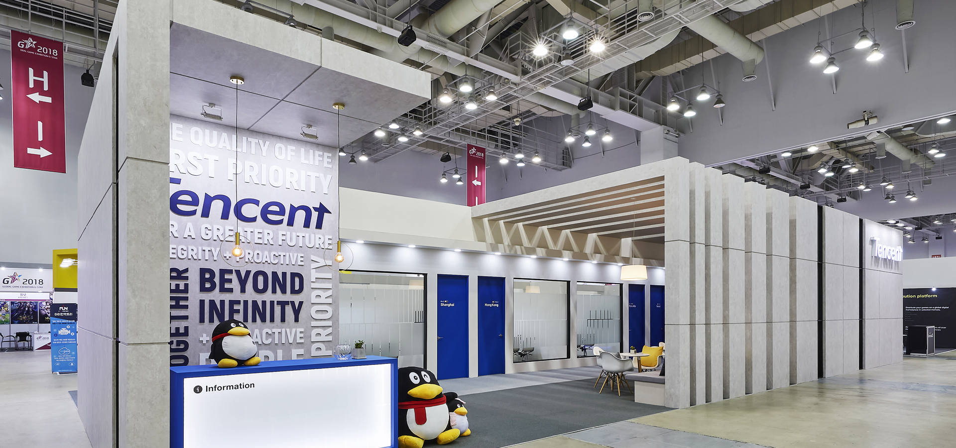 Eidetic Marketing has established an exhibition theme that reflects Tencent’s direction and vision. The theme ‘Together, Beyond Infinity’ along with our key visuals, represents the brand Identity of Tencent, which is to effectively that explores the boundaries of its limitations and not settle with prior achievement, but rather to open up endless possibilities together with partners and patrons. With efficient space configuration, Eidetic Marketing secured 6 meeting rooms, a cafe, a lounge area and two storage spaces for optimizing B2B operation. We provided: